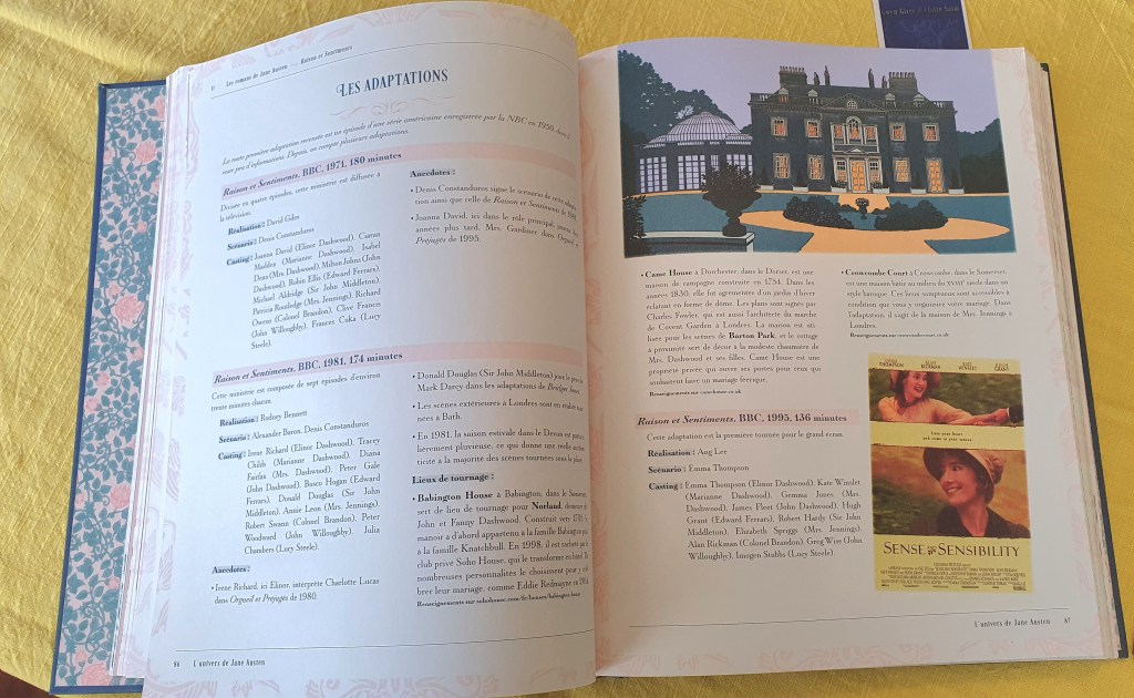 La segunda parte es sobre sus obras: sus 6 novelas publicadas, Los Watson, Sanditon, Lady Susan y su Juvenilia. De cada una hay resumen de la historia, relación de los personajes, los elementos importantes, las adaptaciones que han tenido y de las casas/mansiones en Inglaterra donde se filmaron.