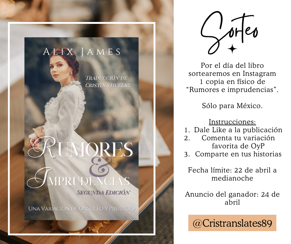 Para el equipo de Cris Translates es un año importante, con varios proyectos en proceso, y por ser la primera vez que ya tenemos «Rumores e imprudencias» en físico, después de varios años, vamos a sortear 1 ejemplar para un afortunado o afortunada en México.
