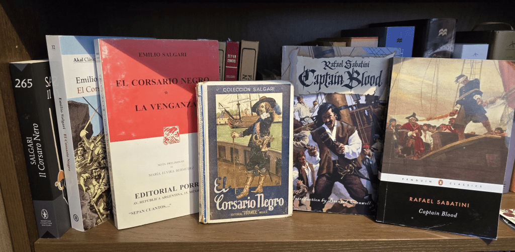 Para México, la colección más completa es de Sepan Cuántos de Editorial Porrúa. Las traducciones son de hace ya algunas décadas, pero son las ediciones que más disfruté en mi juventud y que por mucho tiempo estuve buscando hasta tener los títulos principales de Salgari: El corsario negro, El capitán Tormenta (mi favorito) y Sandokan.