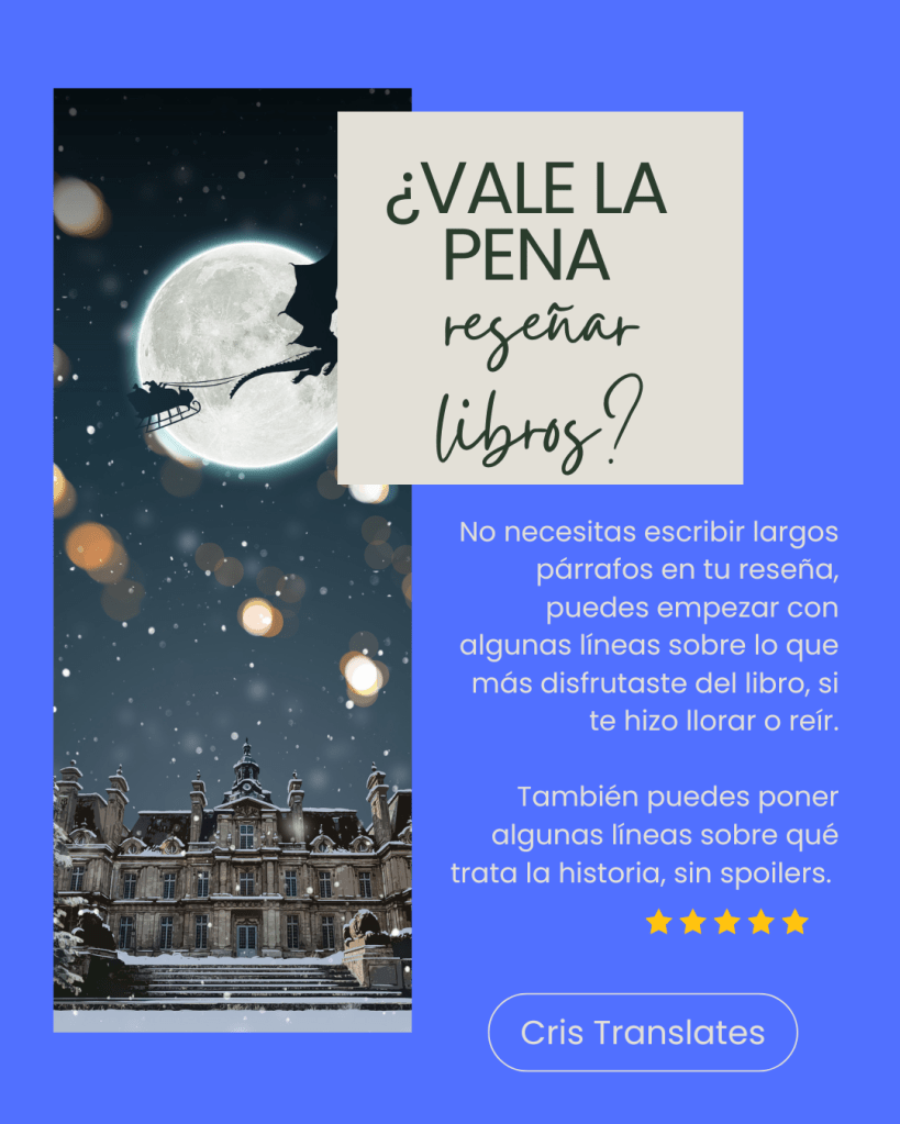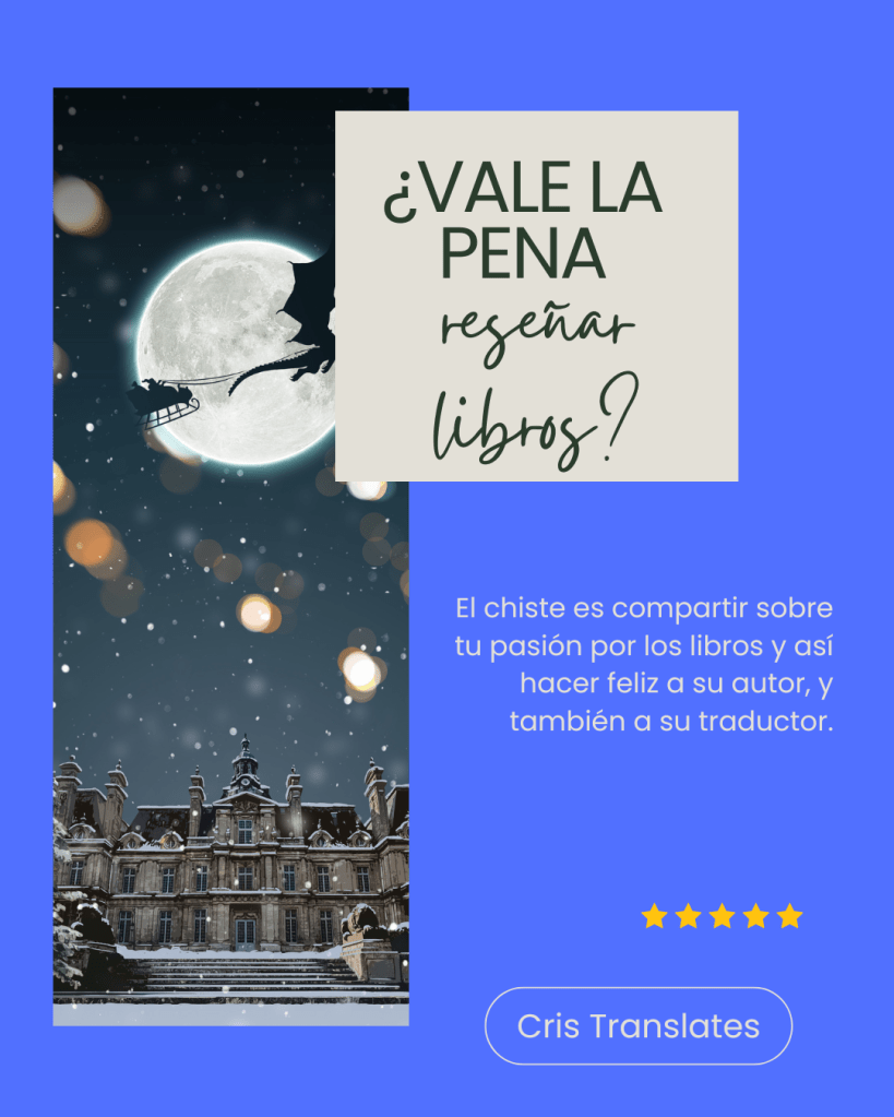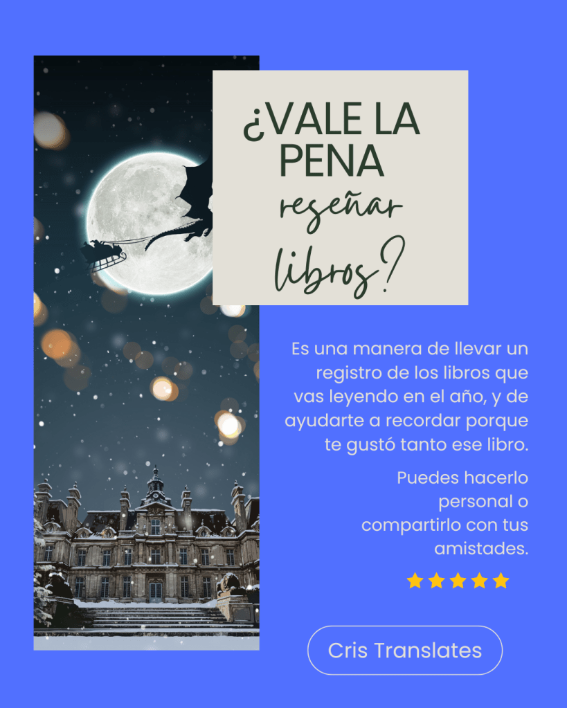 ¿Vale la pena reseñar libros? Publicado porcristranslates1enero 26, 2026Publicado en Recomendaciones Comparte esto: Compartir en X (Se abre en una ventana nueva) X Comparte en Facebook (Se abre en una ventana nueva) Facebook Me gusta Cargando... Relacionado